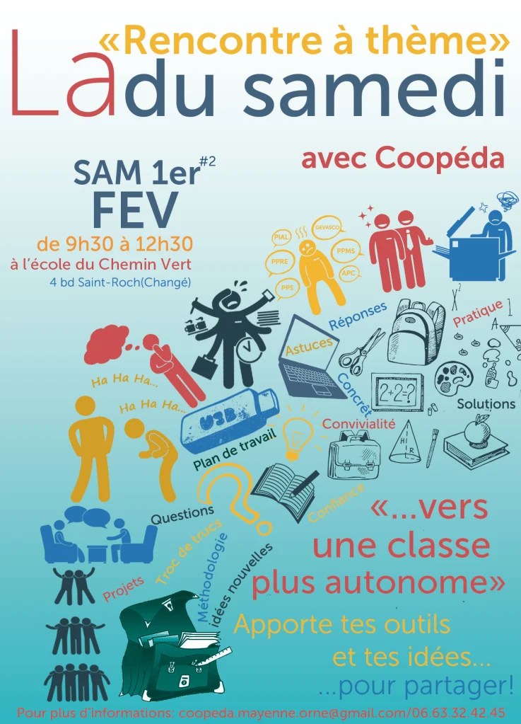 Nous vous attendons nombreux à la rencontre sur le thème « Vers une classe plus autonome »! samedi 1er février de 9h à 12h à l’école de Changé.