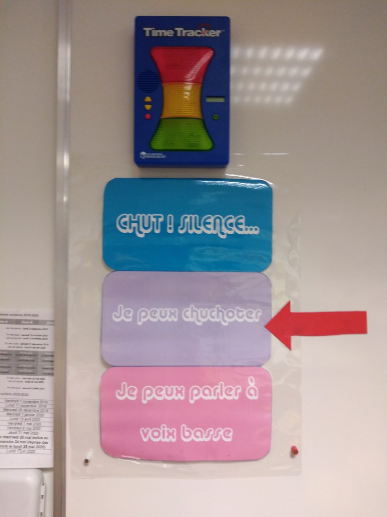 Nous utilisons un maracas pour que chaque personne qui le souhaite fasse baisser le niveau sonore.