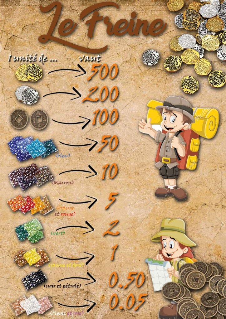 2- Pour parfaire leur équipement, ils vont devoir troquer leurs ceintures, leurs blasons et appréciations du plan de travail obtenus dans la semaine contre des… FREINES!!! La nouvelle monnaie de la classe!!!