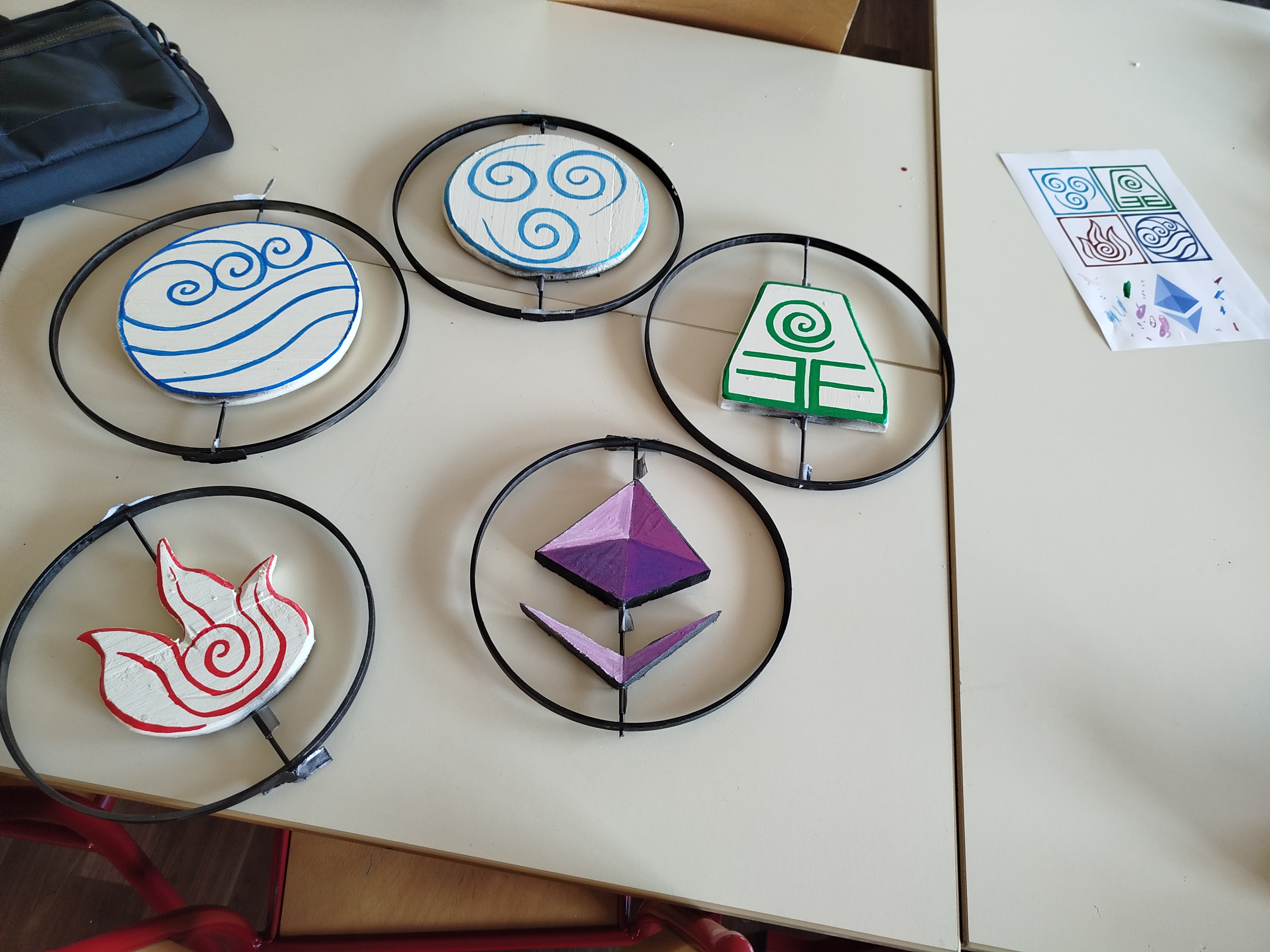 Nous avons aussi créé 5 totems sur les 5 éléments avec l’artiste changéen Leb.
