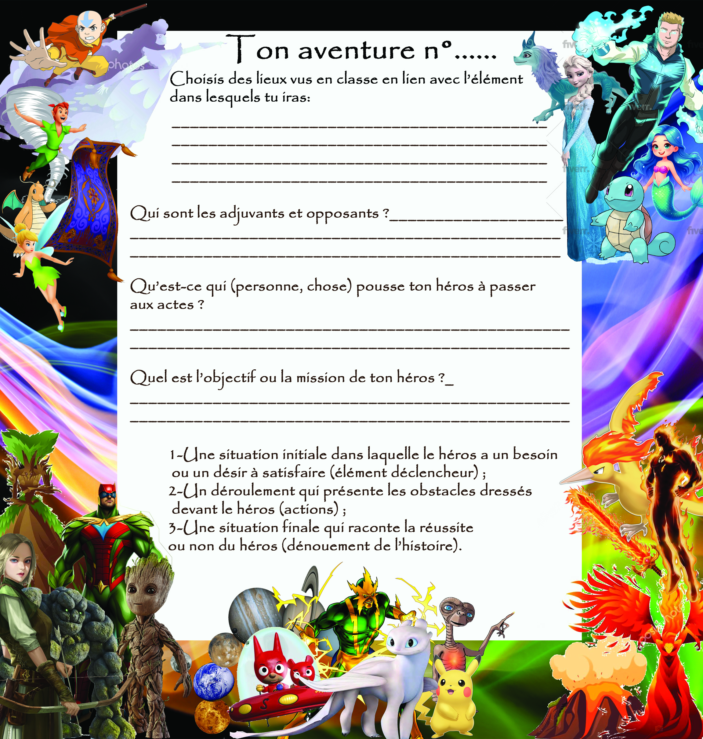 Le thème de cette année scolaire 2024/2025 : Les 5 éléments! Voici mes visuels pour le carnet d’aventure de mes élèves et les affichages: